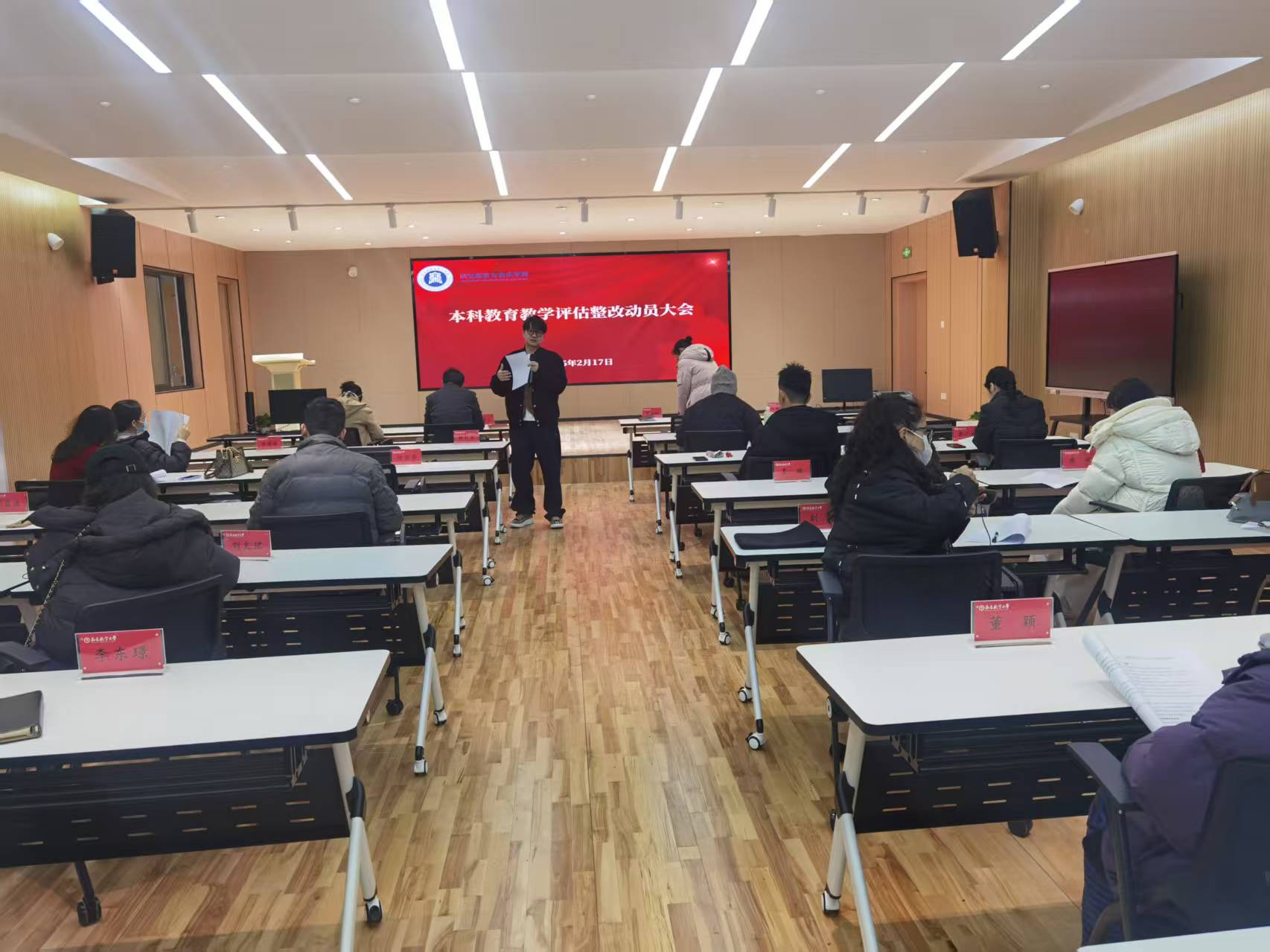 为高标准做好本科教育教学评估迎检、深入推进学院自评自建工作,2月17日上午,学院在K125室召开本科教育教学评估整改动员大会,大会由分管教学副院长王铭勋主持,全体教职工参加会议。